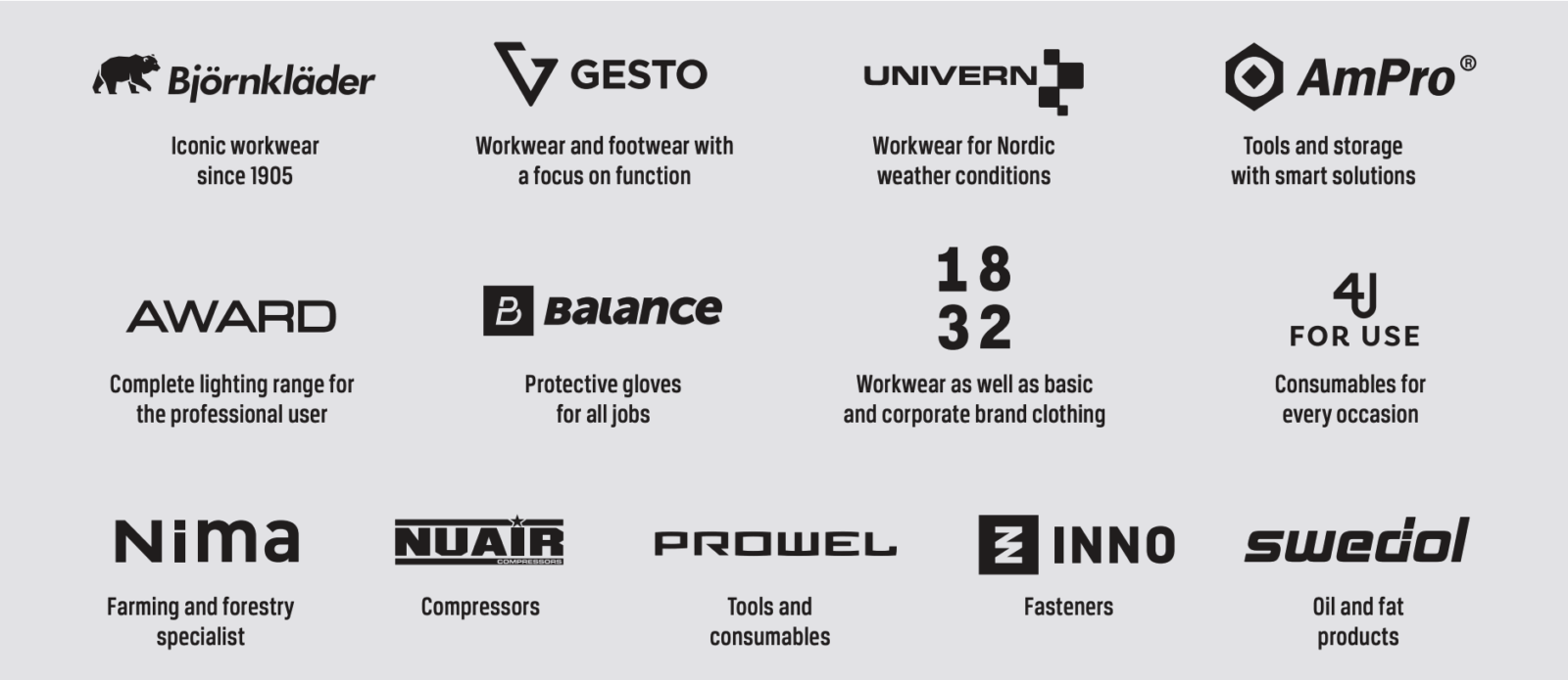 Alligo’s offering is developed for corporate customers within eight industry segments. The products consist of both own brands and external brands and are characterised by high quality, value for money and product safety, combined with a good service level and availability.